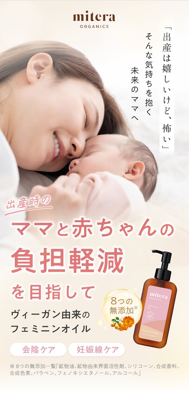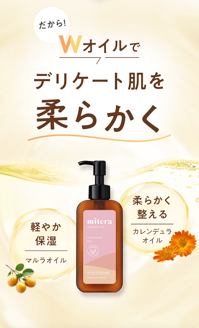 mitera organics公式サイト / 史上初! ヴィーガン処方のフェミニンオイル。会陰ケアに最適。
