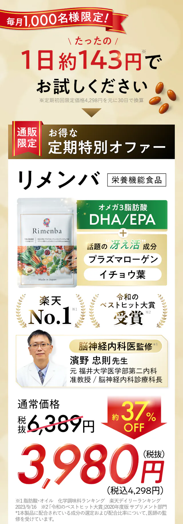 【Rimenba 公式】脳神経内科医監修の知力健康サプリ/リメンバ