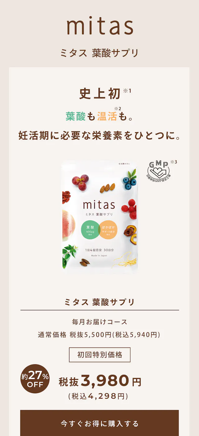 mitas series (ミタスシリーズ) 公式サイト | 時期ごとに選べる葉酸サプリシリーズ